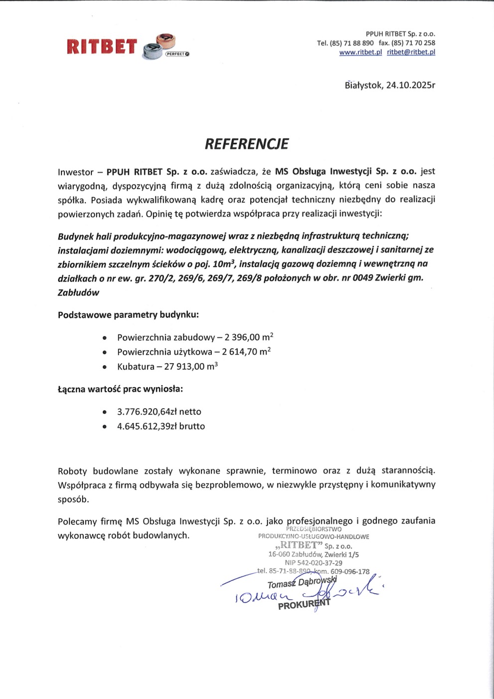 Zajmujemy się budową budynków inwentarskich, przemysłowych, obiektów użyteczności publicznej, domów jedno i wielorodzinnych, przebudową, adaptacją oraz remontem istniejących budynków, a także rozbiórkami i robotami wyburzeniowymi